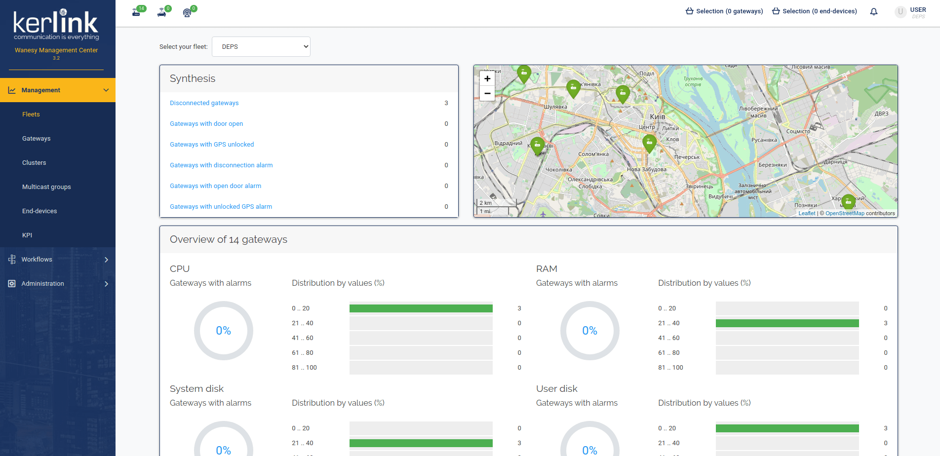 Wanesy Management Center – це повноцінне модульне рішення, що включає модулі управління операційною діяльністю (Operating Support System – OSS), управління базовими станціями (Base Station Controller – BSC), контролер радіомережі (Radio Network Controller – RNC), а також мережевий сервер LoRaWAN (LNS) для моніторингу та налаштування всієї системи IoT, що ви побудуєте.